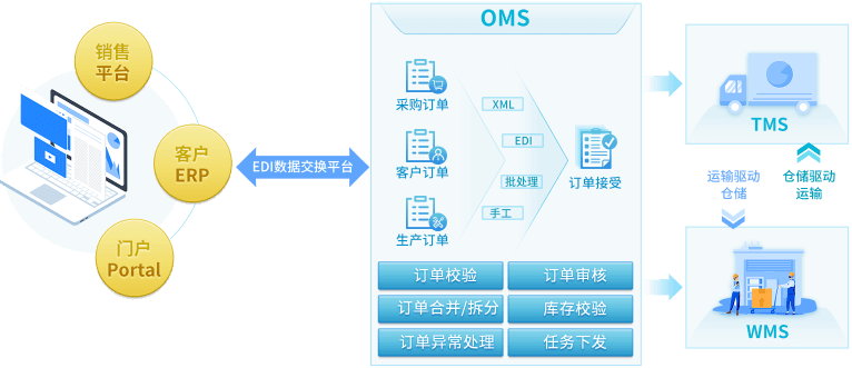 - 與上下游業(yè)務作業(yè)系統(tǒng)WMS、TMS、 DMS、 SRM集成